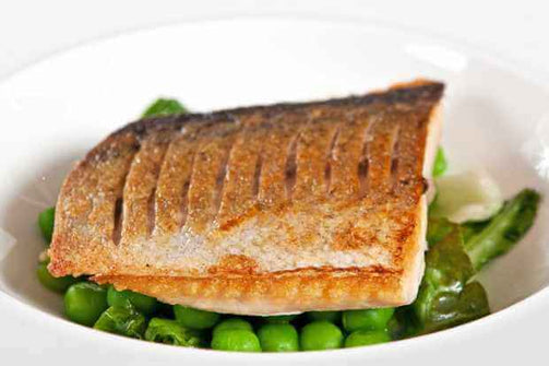 Ofnbökuð bleikja með sítrónusósu, sætum kartöflum og salati.