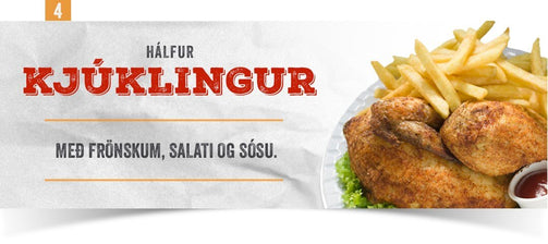 Hálfur Kjúklingur með frönskum, hrásalati og kokteilsósu.